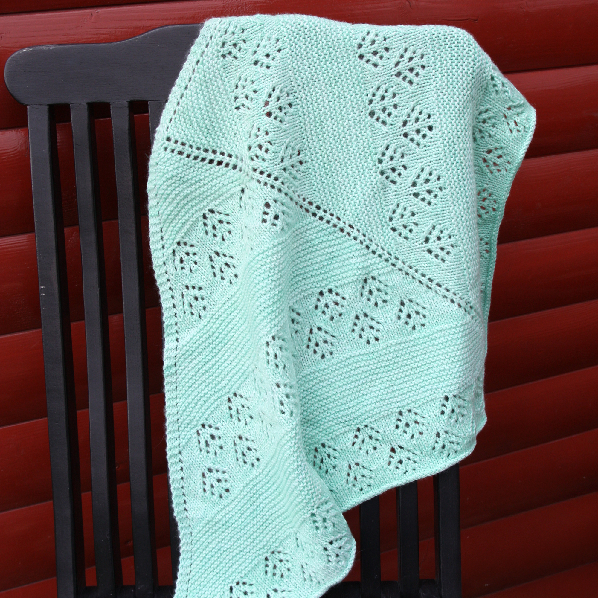 Klassískt prjónað sjal í blágrænum lit, hannað af Destiny Meyer. Úr Audine Wools Sigh DK með Merino og Cashmere sem gerir það mjúkt og hlýtt.